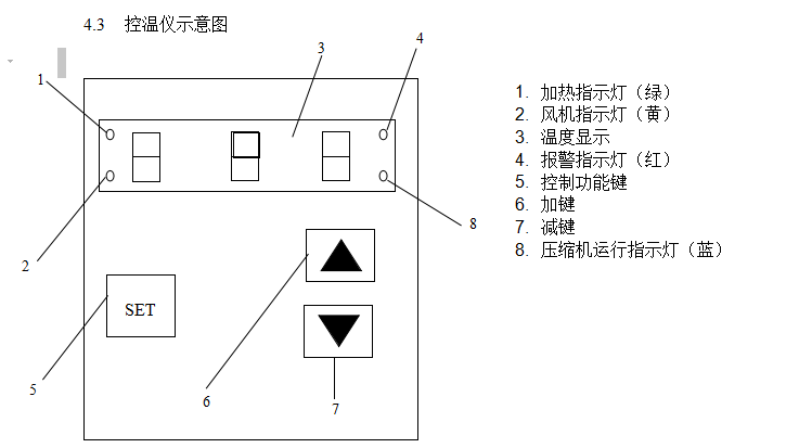 4.6.3   設定工作溫度時如出現控溫儀報警,可先關閉電源開關,然后重新打開電源開關。